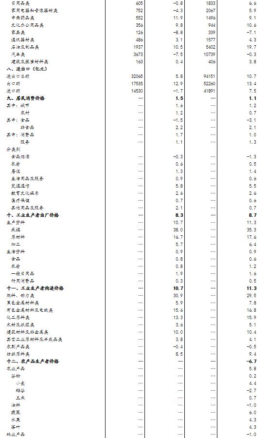 (8)进出口数据来源于海关总署;城镇新增就业人员数据来源于人力资源和社会保障部。