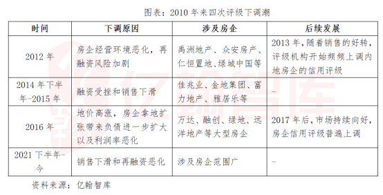 拉长时间线,我们发现2010年来评级下调潮已经发生过3次,评级下调的周期基本跟随地产的周期。