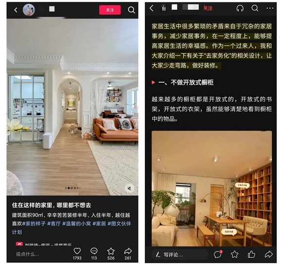 左为抖音图文,以图为主,右为头条图文,以文为主