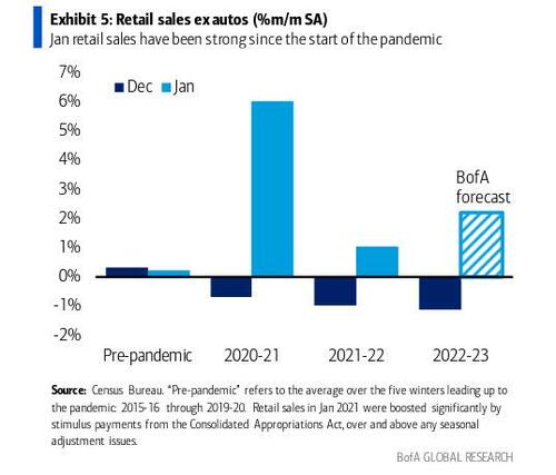此外,美银预计,1月核心零售销售(不包括汽车、汽油、建筑材料和餐馆)将环比增长2.6% 。