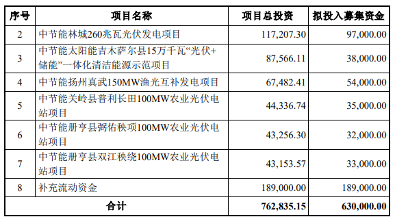 7月14日,中节能太阳能发布公告称,本次可转债募集资金不超过人民币 63 亿元(含本数),扣除发行费用后的 净额将全部用于光伏电站项目建设及补充流动资金,具体情况如下: