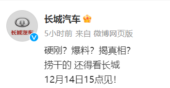 此外,12月11日,长城汽车官博宣布,将于12月14日15时在北京举行懂车帝冬测标准质疑沟通会。