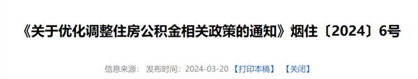 3月20日,烟台市住房公积金管理中心发布《关于优化调整住房公积金相关政策的通知》,自3月21日起施行。