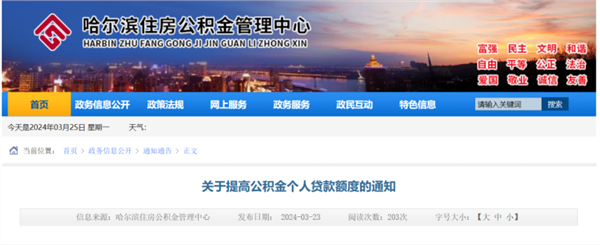 3月23日,哈尔滨住房公积金管理中心发布《关于提高公积金个人贷款额度的通知》。