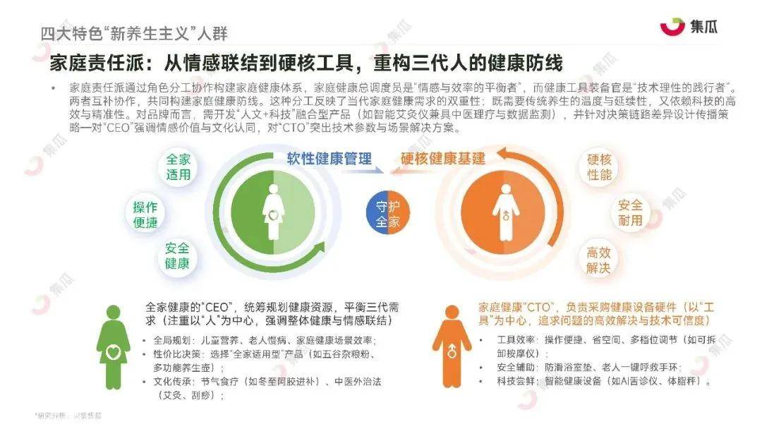 根据集瓜数据《2025“新养生主义”人群洞察报告》,养生消费市场已分化为四类核心人群,其行为特征与消费理念差异显著: