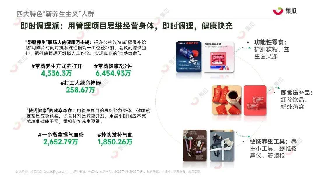根据集瓜数据《2025“新养生主义”人群洞察报告》显示,从朋克养生到科学疗愈,当代年轻人的养生行为正在多方面,全方位发生逻辑重构。