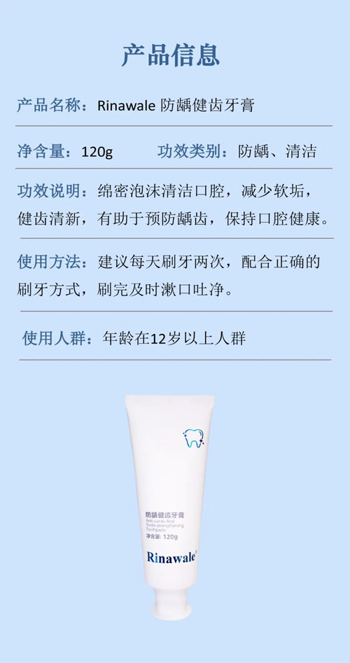 “Rinawale®防龋健齿牙膏”