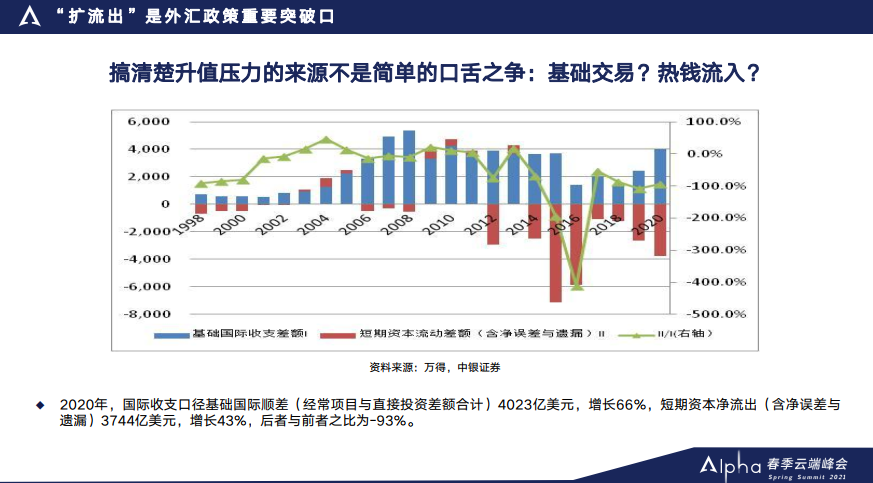 “央行从2018年以后,基本退出了外汇市场的常态干预,所以我们这一次应对汇率升值的压力,主要是采取了增加汇率弹性和调控资本流入、扩大资本流出的措施。”
