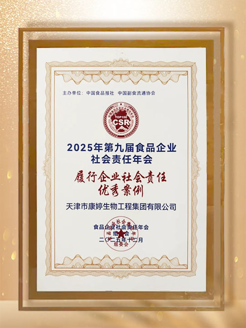 2025年12月20日,由中国食品报社、中国副食流通协会主办的“第九届中国食品企业社会责任年会”在北京召开。康婷集团企划中心总监王梓童女士作为集团代表受邀出席了本次活动。会议期间,社会责任优秀案例榜单发布,对过去一年来食品企业践行社会责任的成果进行全面回顾,挖掘了具有时效性、创新性及影响力的履责标杆。康婷集团凭借在科技创新驱动高质量发展、食品安全与质量以及消费者权益保护等领域的突出表现,成功入围榜单,荣选“履行企业社会责任优秀案例”。