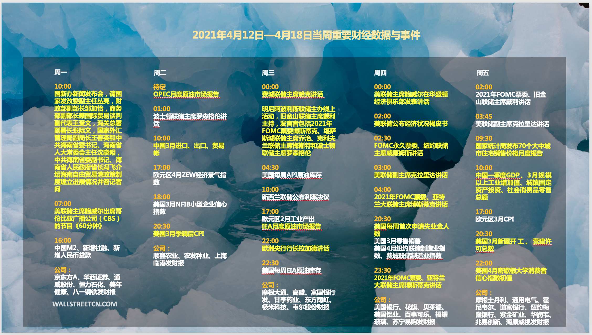 4月12日至4月18日当周重磅财经事件一览:
