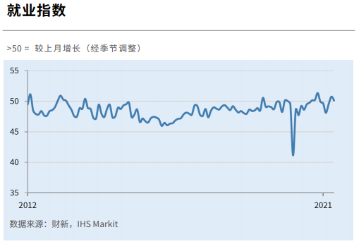制造业用工曾在4月份轻微扩张,至5月份大致持平。部分企业为扩大产能而增加用工,另外一些企业则鉴于投入成本上扬而对增加用工更加审慎。积压业务量因此连续3个月上升。