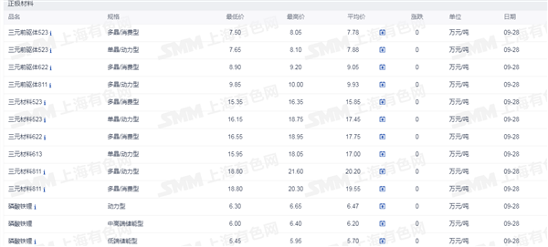 2.正极材料价格